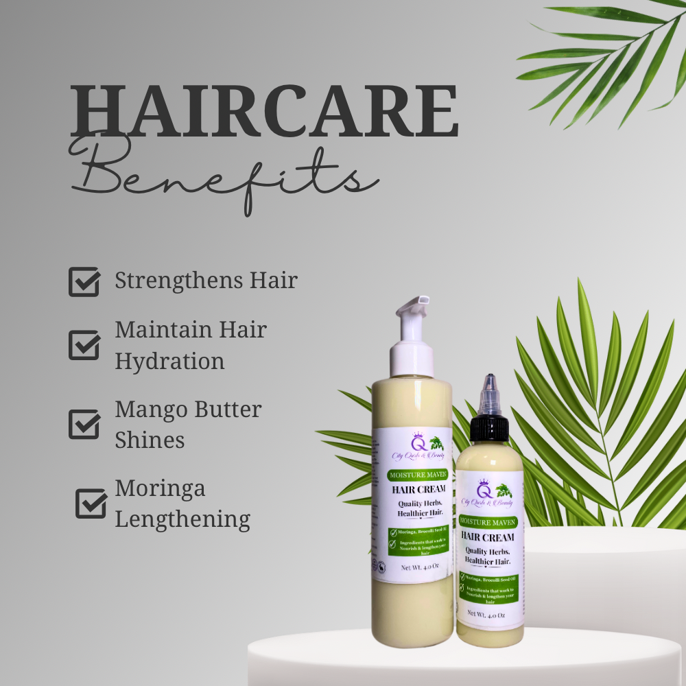 Moringa Cream: Ingredients: Purified Water, Aloe Leaf Juice, Behentrimonium Methosulfate, Cetearyl Alcohol (conditioning), Moringa, Sunflower Oil, Hydrogenated Ethylhexyl Olivate (and) Hydrogenated Olive Oil, Unsaponifiables, Glycerin, Brocolli Seed Oil, Grapeseed Oil, Guar Gum, Nettle Botanical Blend, (Mixture of liquid herbal extracts), Fragrance, D-Panthenol (Vitamin B5), Vitamin E, Germal Plus, Guar Gum.